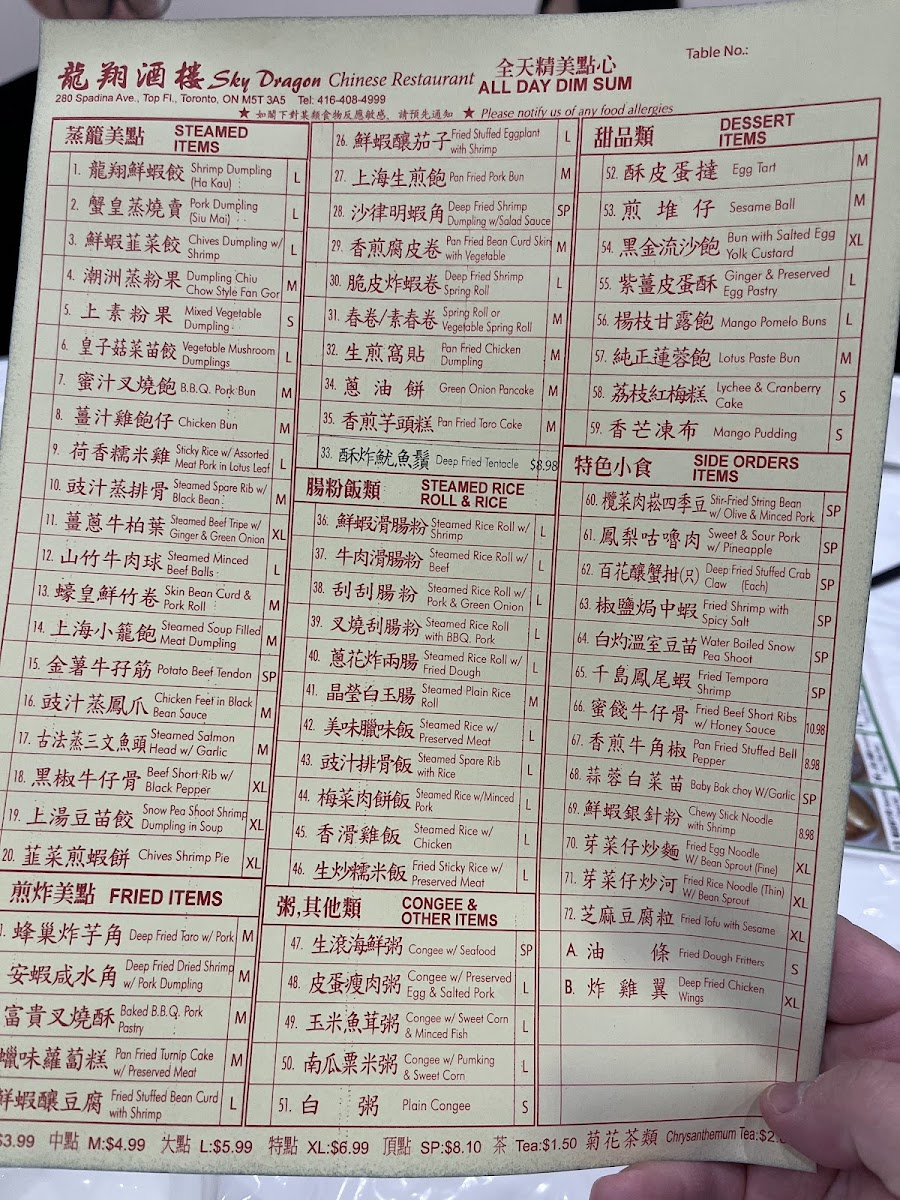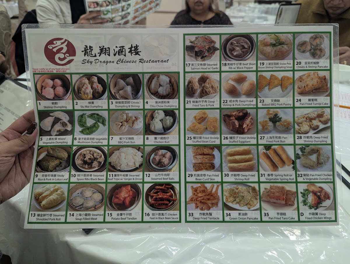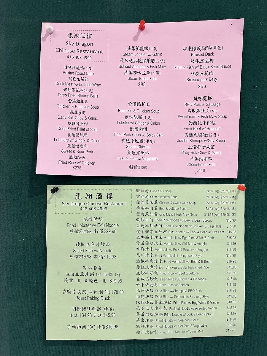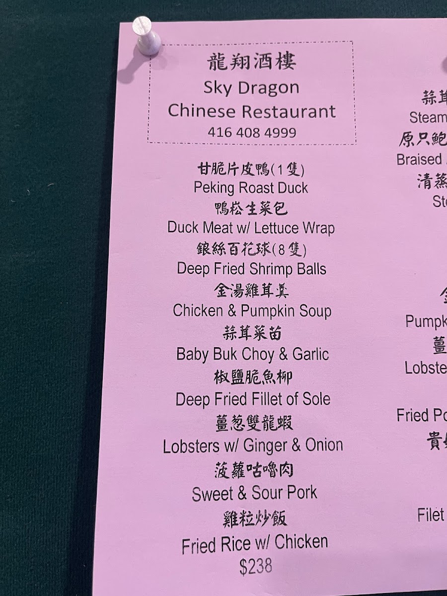 Sky Dragon Chinese Restaurant 龍翔酒樓 Menu